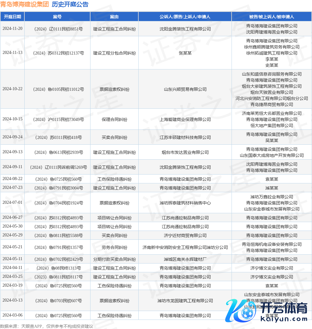 本站音信云开体育,凭证天眼查APP知道,近日公布了一则青岛博海拓荒集团有限公司看成被告/被上诉东谈主的开庭公告,详备骨子如下: