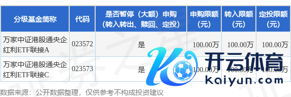 本站音信,9月2日万家基金管理有限公司发布《对于万家中证港股通央企红利交游型灵通式指数证券投资基金集合基金暂停大额申购(含休养转入、如期定额投资)的公告》。公告中提醒,为了保证基金的沉着运作,保护基金份额捏有东谈主的利益,自2025年9月2日起万家中证港股通央企红利交游型灵通式指数证券投资基金集合基金暂停大额申购(含休养转入、如期定额投资),申购、休养转入上限金额为100.0万元开yun体育网,下属分级基金休养明细如下: 以上本色为本站据公开信息整理开yun体育网,由AI算法生成(网信算备31
